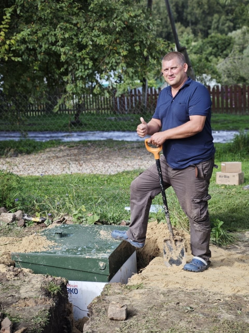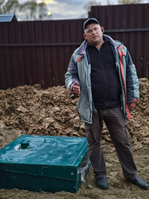 За день установили септик на любимой даче. Воду сбрасывает в дренажный колодец, использую для полива. Монтаж грамотный, все меряют по уровню, работают слаженно. Запаха нет! Вообще! Перезимовала станция нормально. Спасибо